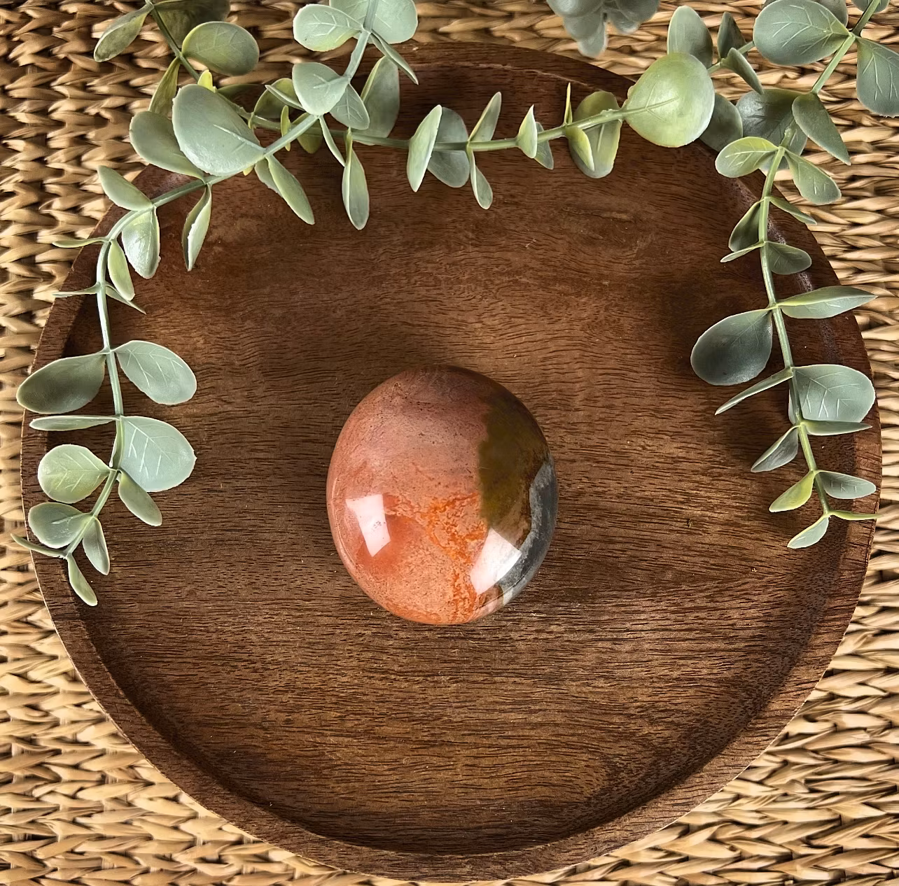 På bilden ser ni en meditationssten (handsten) av Polykrom Jaspis