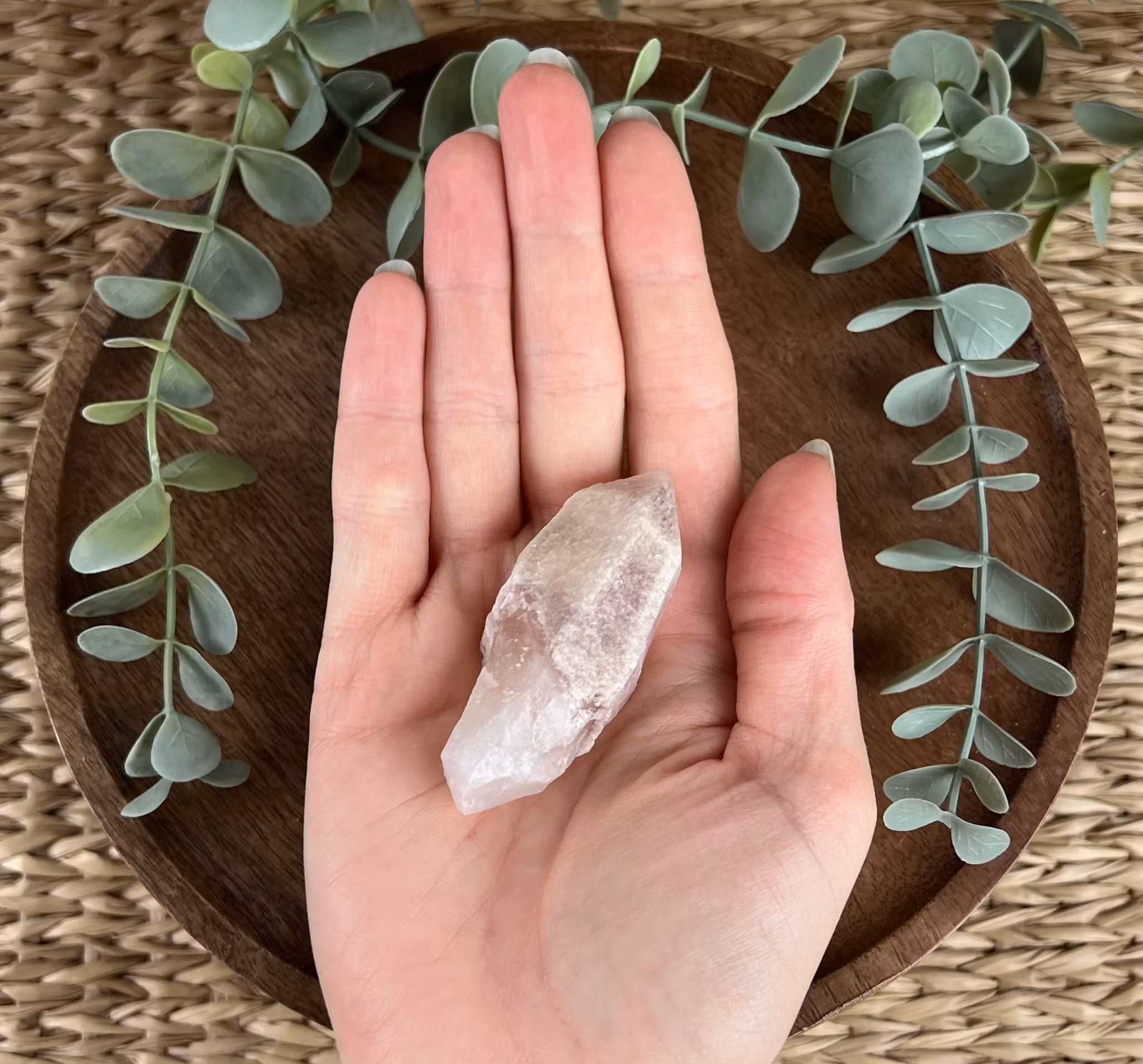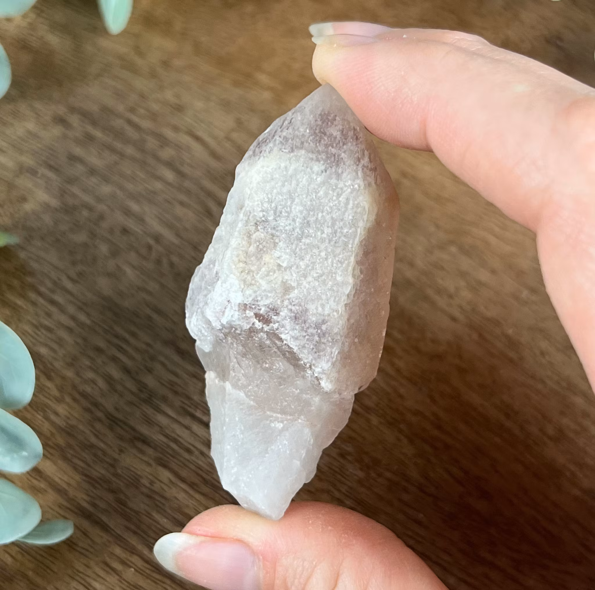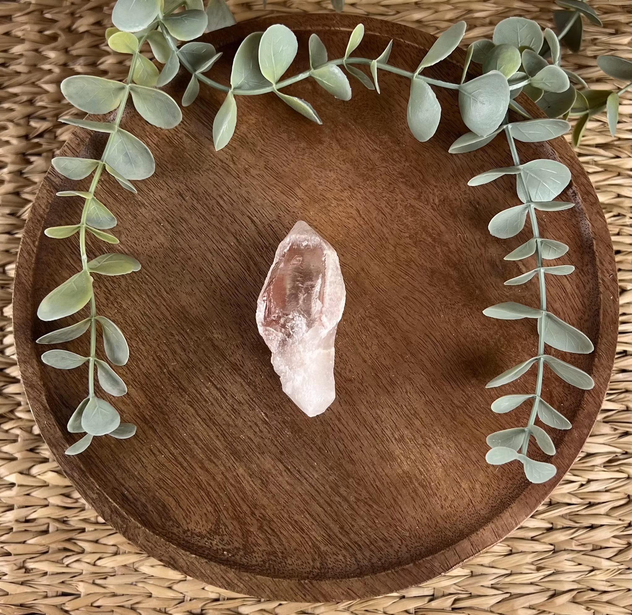 På bilden ser ni en rå spets av Strawberry Lemuriankvarts 💕