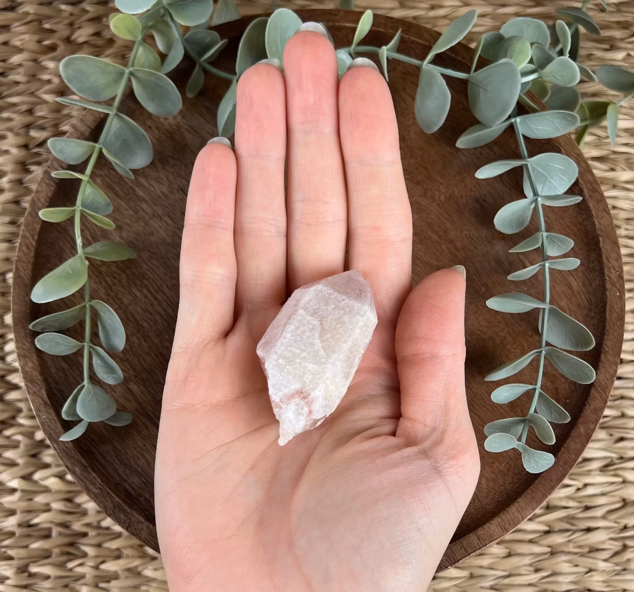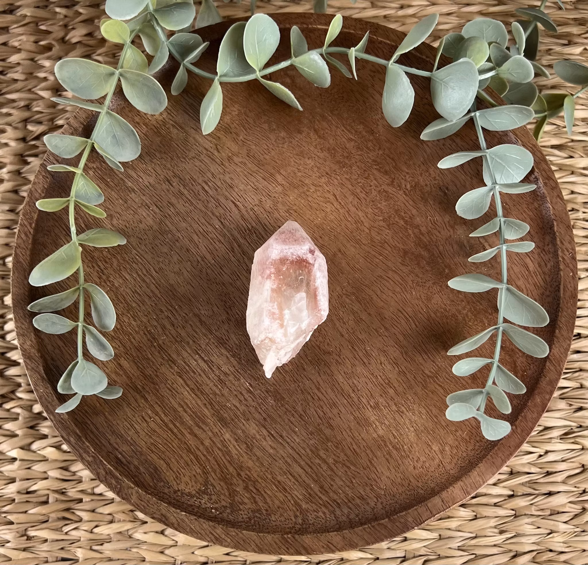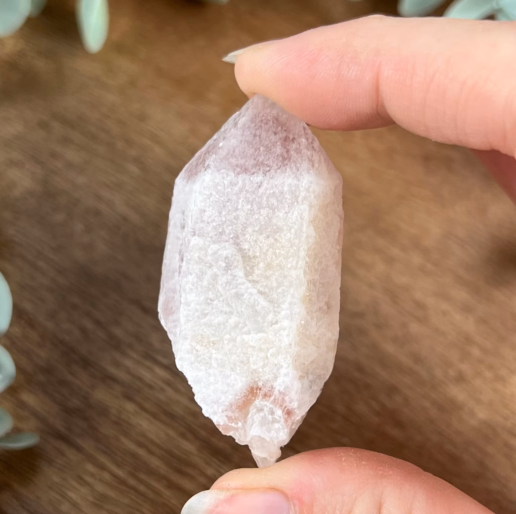På bilden ser ni en rå spets av Strawberry Lemuriankvarts 💕
