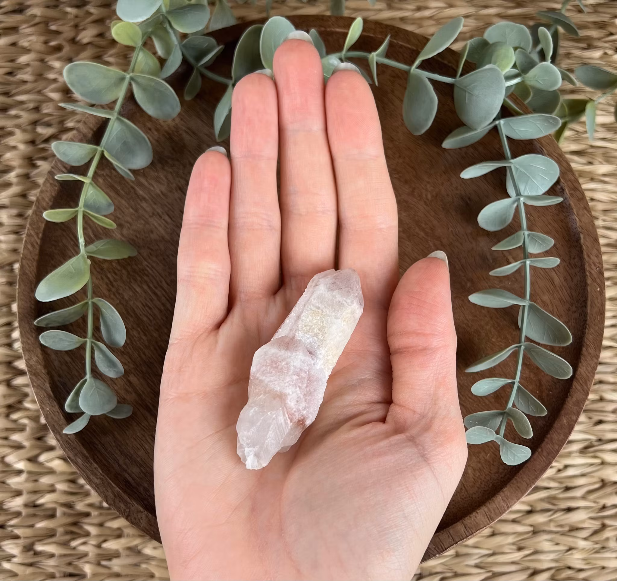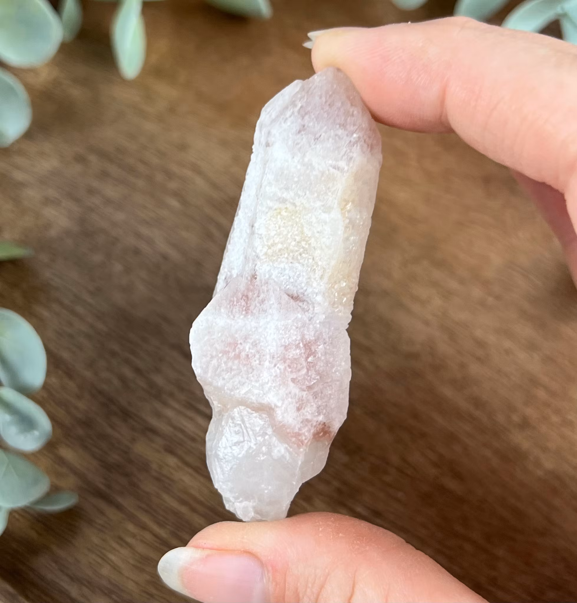 På bilden ser ni en rå spets av Strawberry Lemuriankvarts 💕