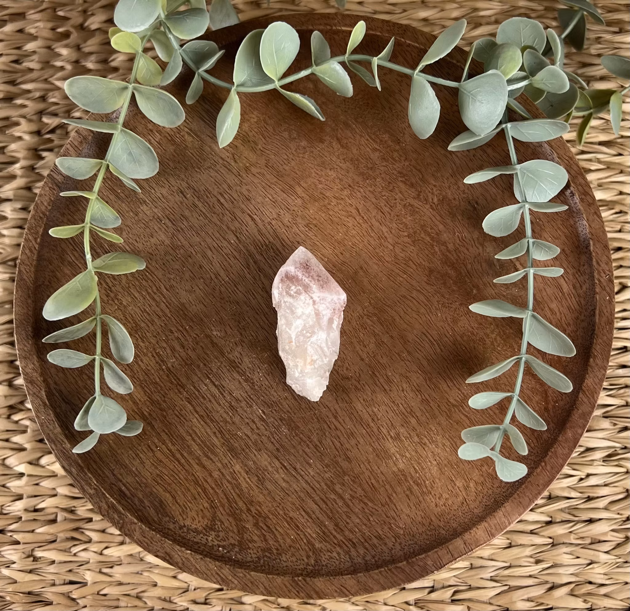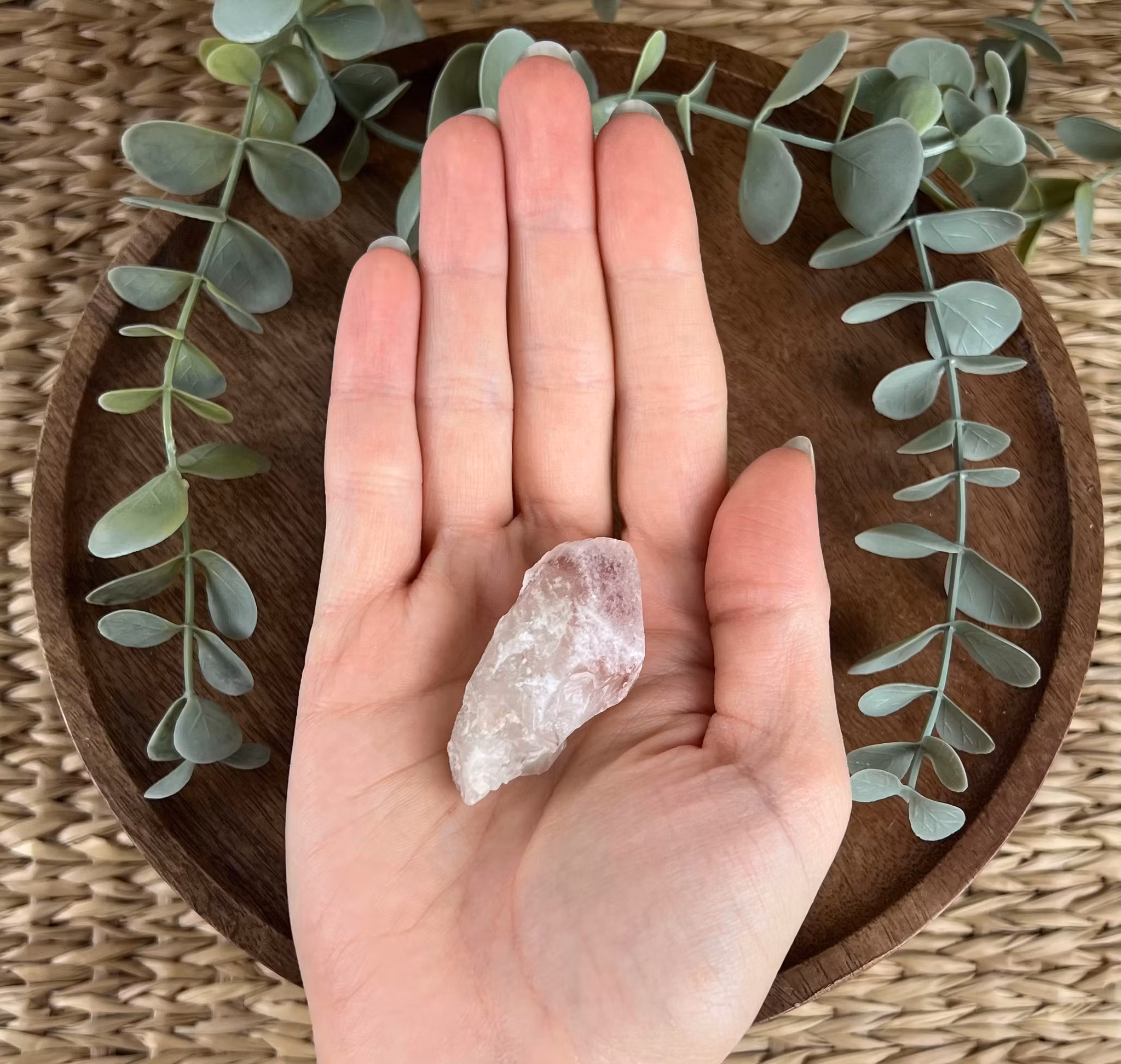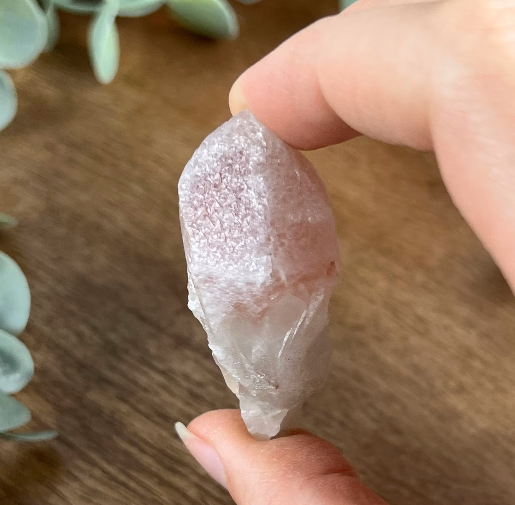 På bilden ser ni en rå spets av Strawberry Lemuriankvarts 💕