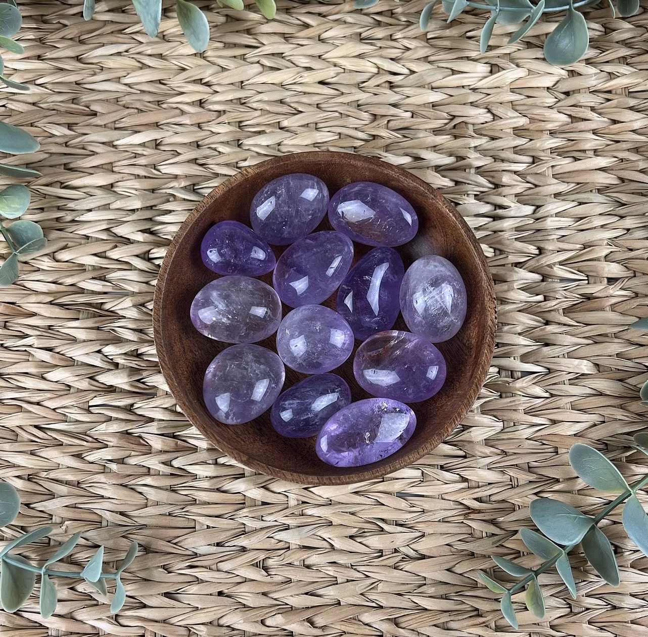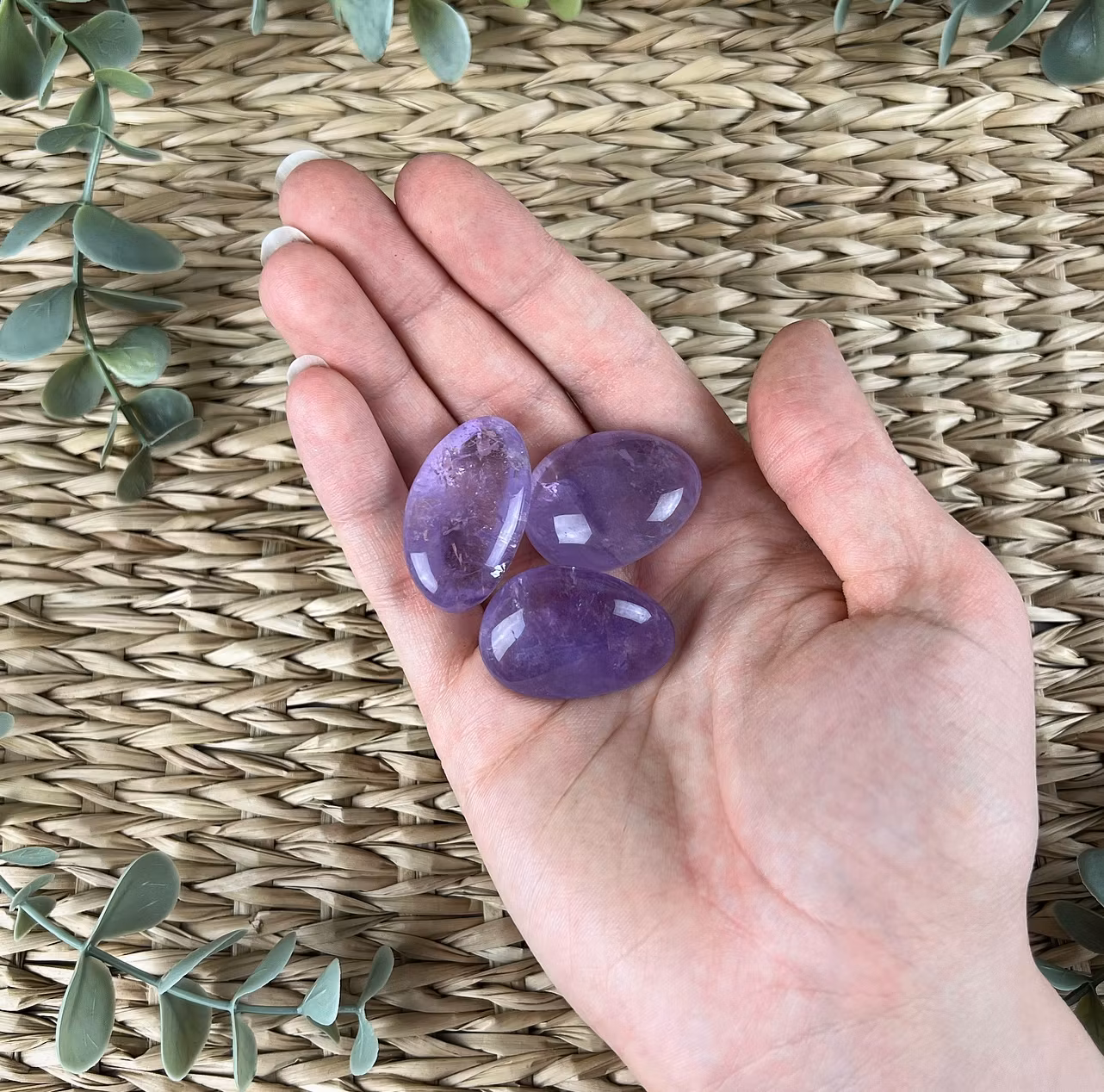 På bilden ser ni "kramisar"/cuddlestones av ametist