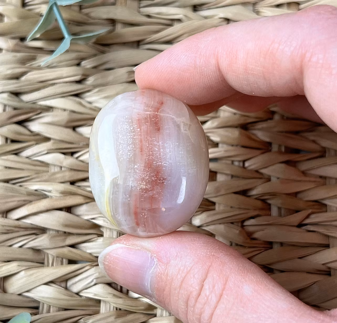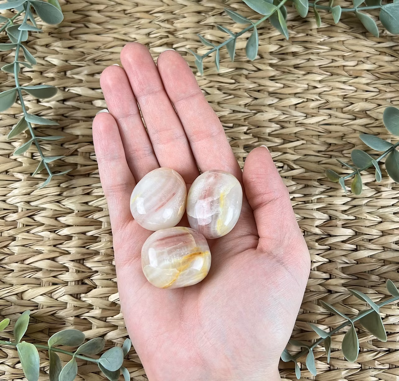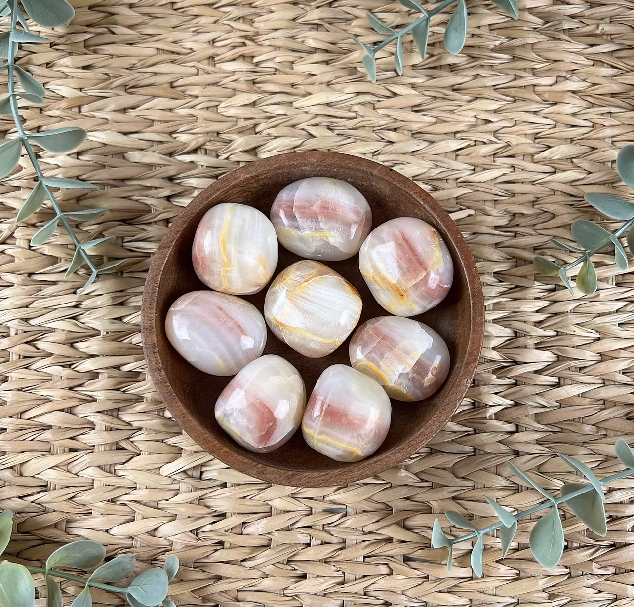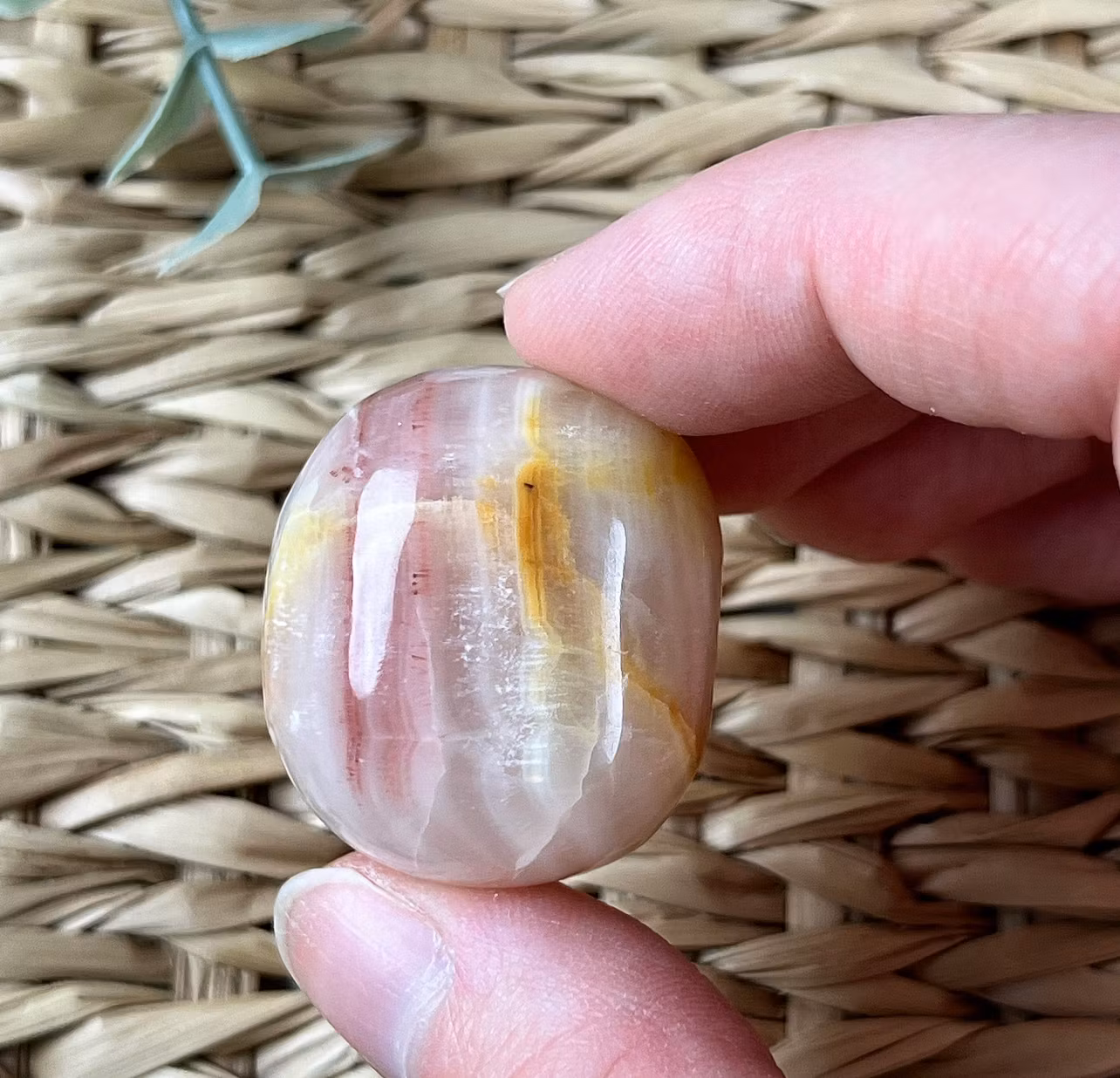 På bilden ser ni kramisar/cuddlestones av Bandad Rosa kalcit av himla fin kvalitét