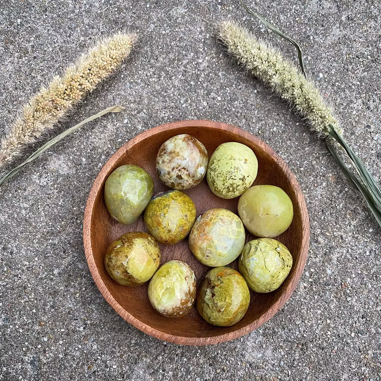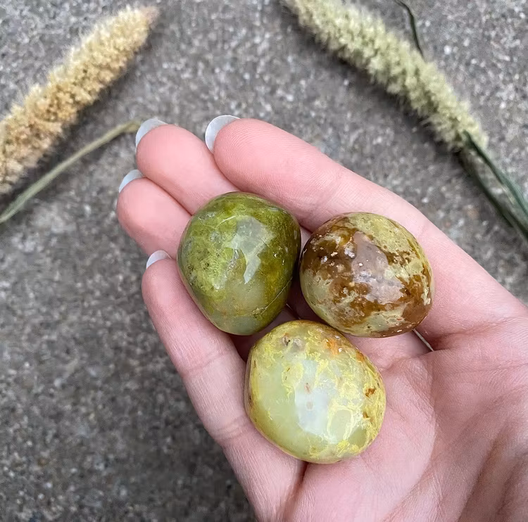 På bilden ser ni "kramisar"/cuddlestones i grön opal.