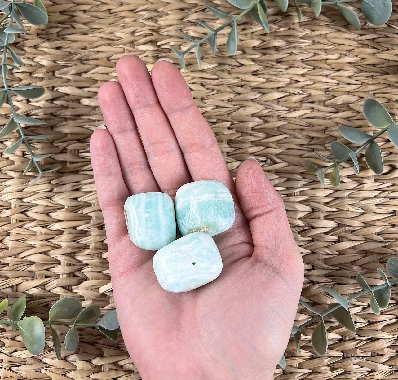På bilden ser ni kramisar/cuddlestones av Karibisk Blå kalcit