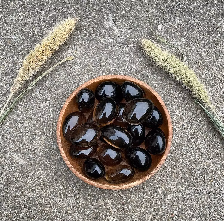 På bilden ser ni "kramisar"/cuddlestones i rökkvarts.