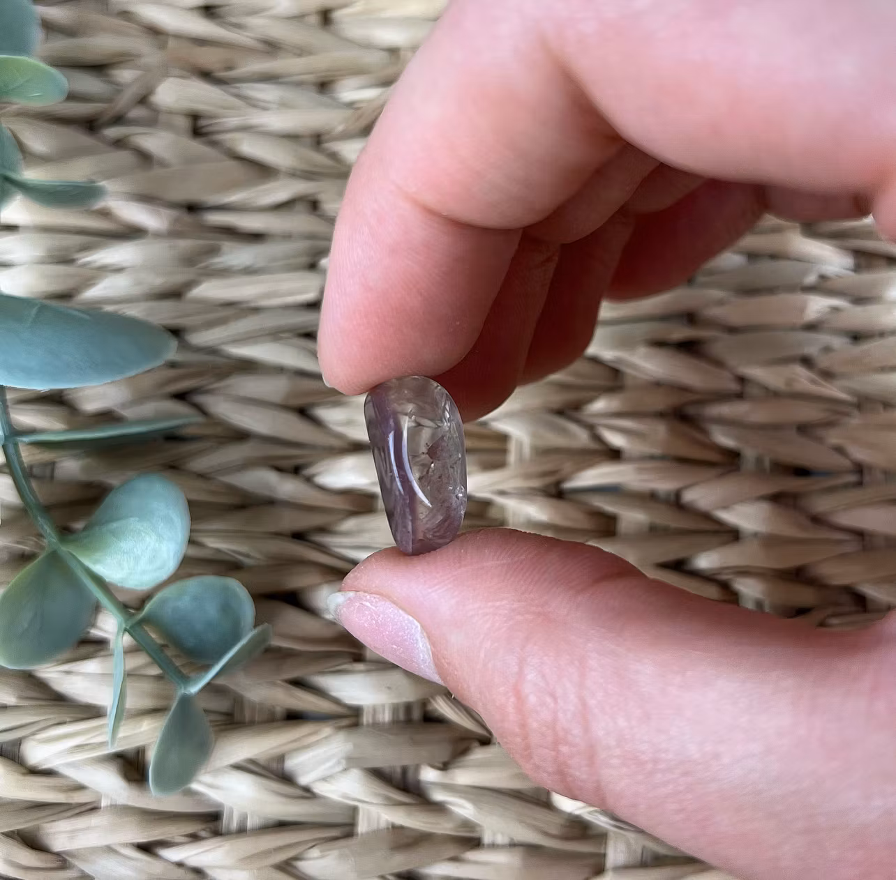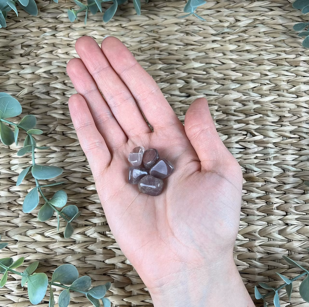 På bilden ser ni mindre trumlade stenar av Lithiumkvarts