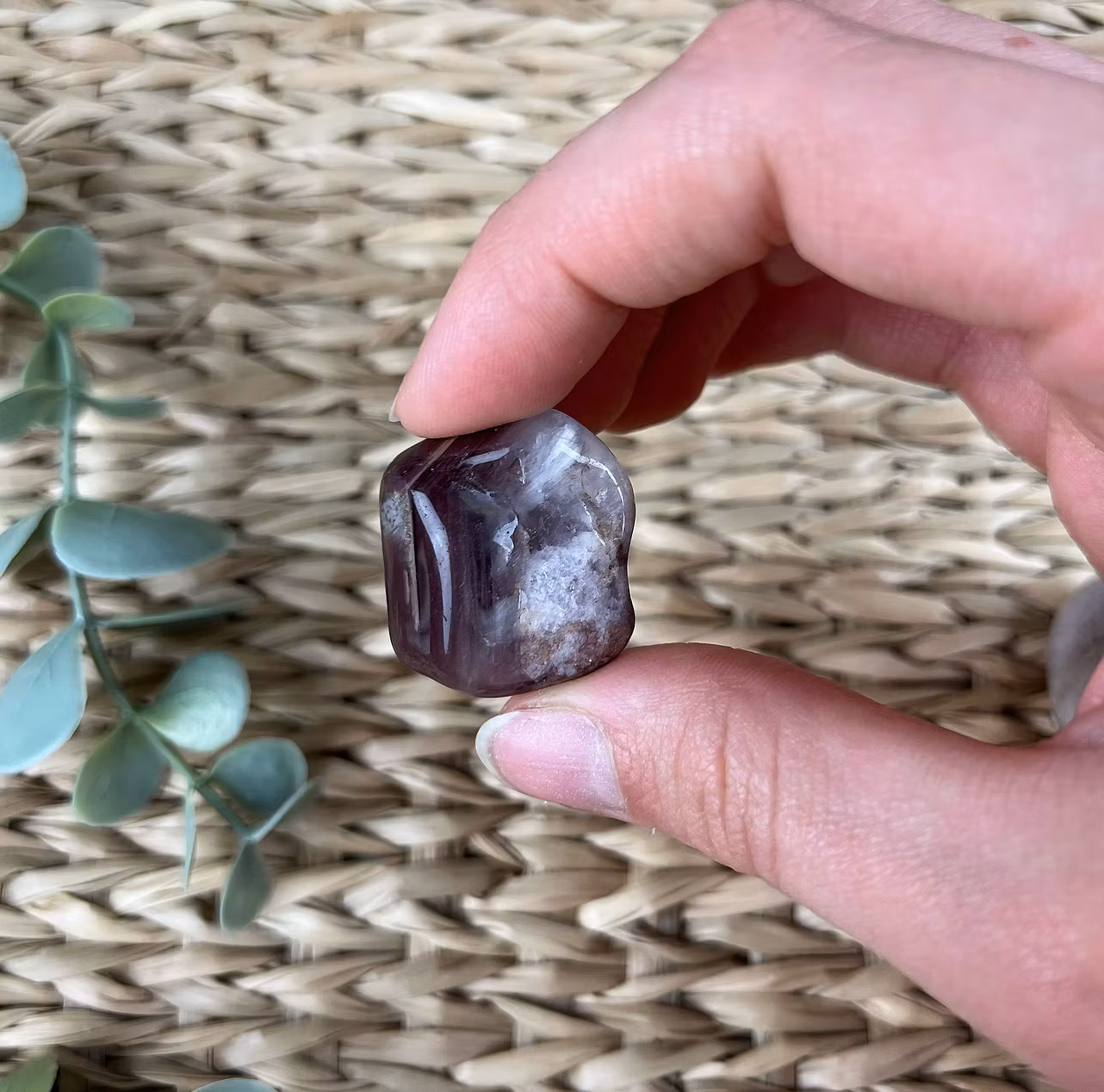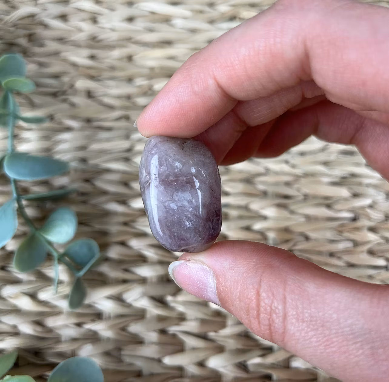 På bilden ser ni mindre trumlade stenar av Lithiumkvarts