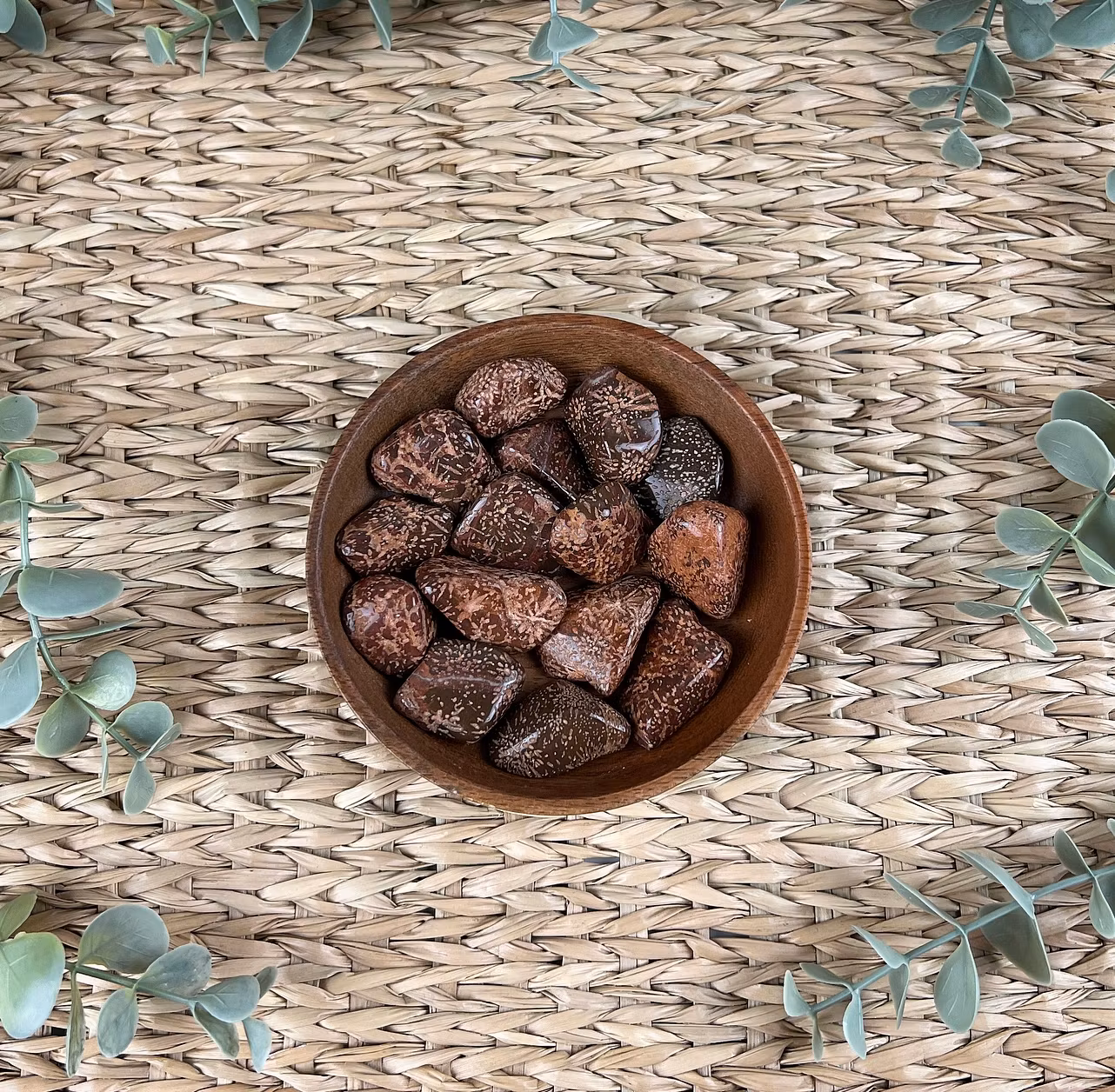 På bilden ser ni mindre trumlade stenar av Stjärn Jaspis