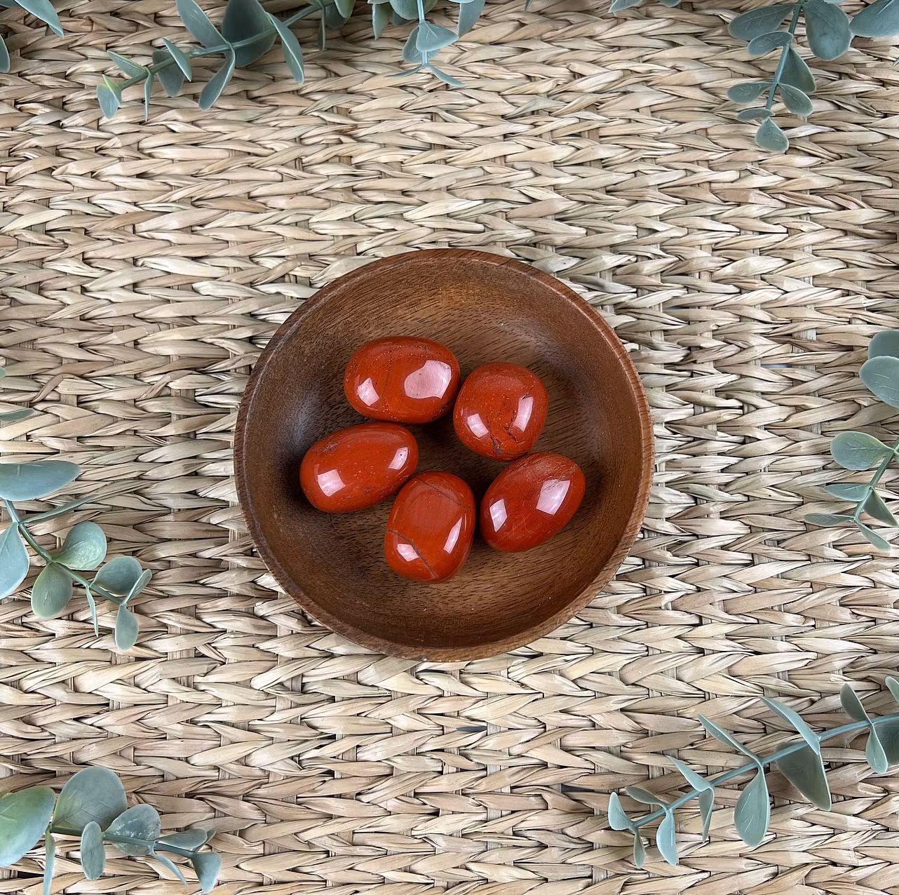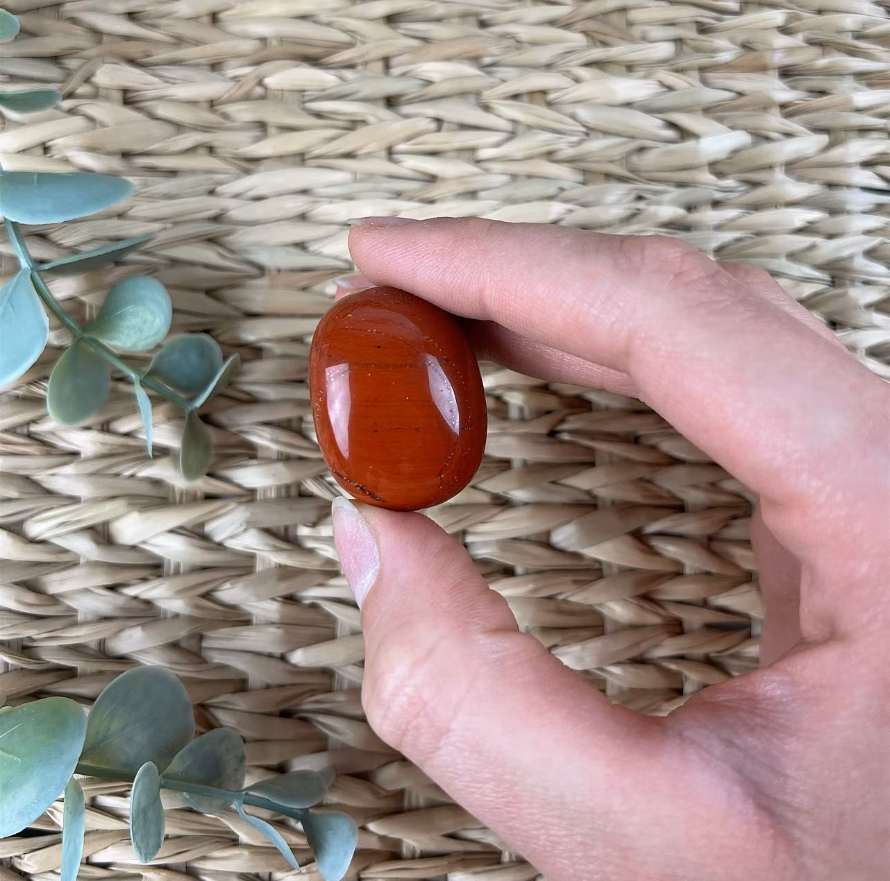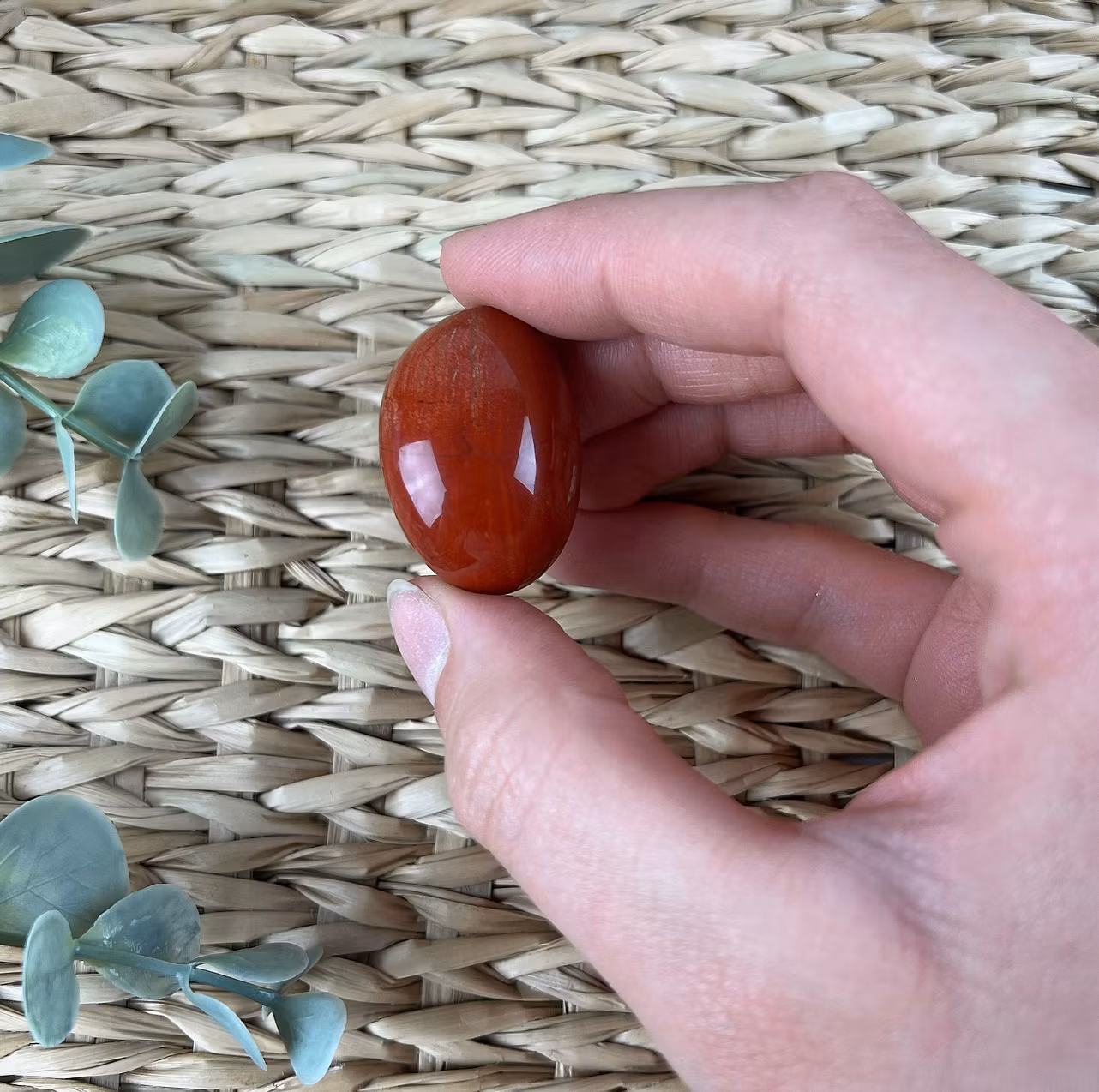 På bilden ser ni "kramisar"/cuddlestones av röd jaspis